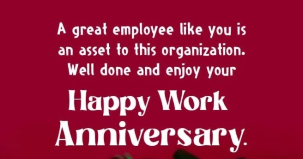 Simple wishes include “Happy Work Anniversary! Wishing you more success ahead.” or “Congrats on another great year at work.”
